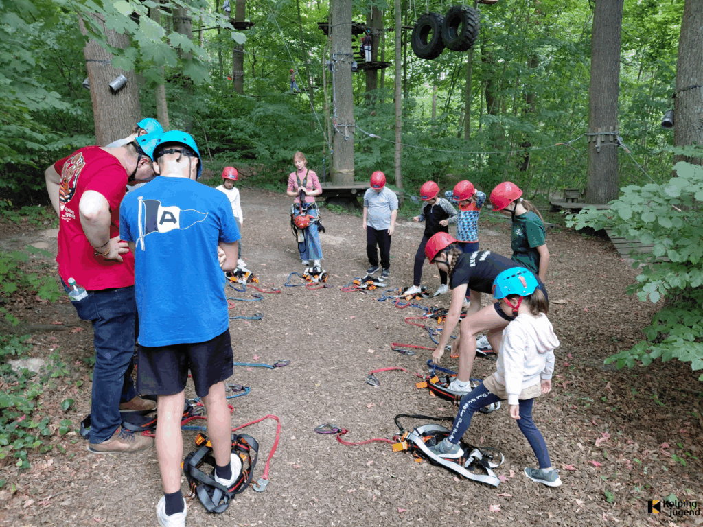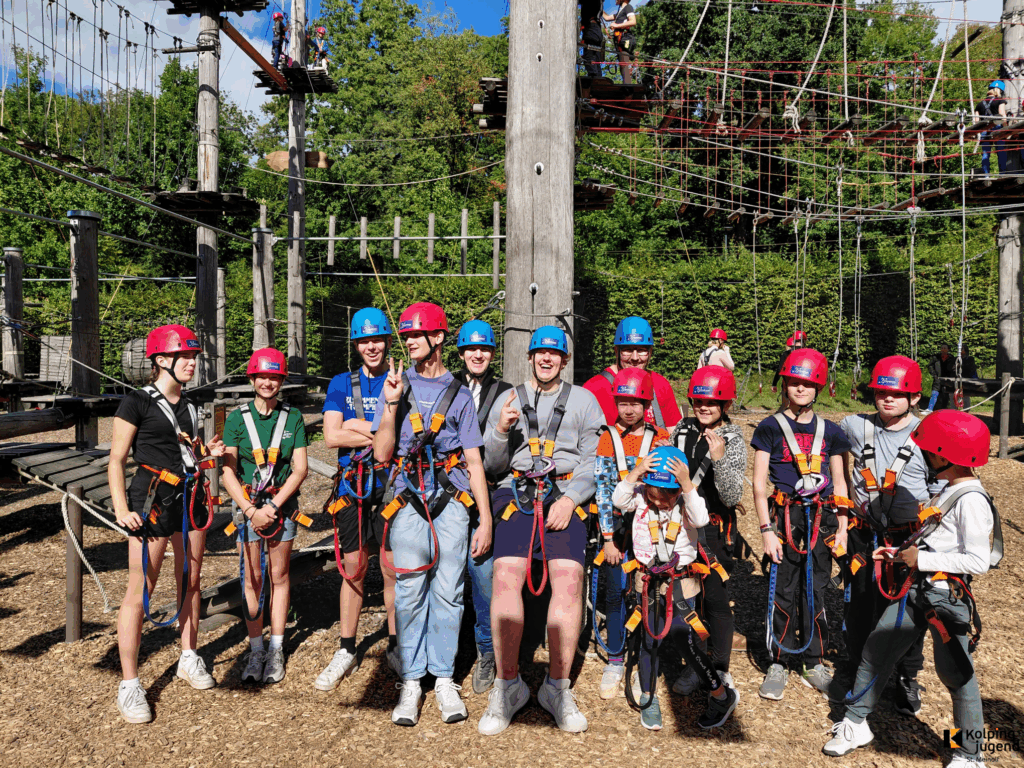 Am letzten Tag unseres Sommerprogramms ging es für uns hoch hinaus und zwar in den Kletterpark am Johannesberg. Mit 13 motivierten Teilnehmenden machten wir uns auf, die Baumwipfel zu erobern und unsere Grenzen auszutesten.