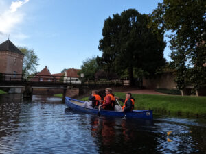 Natürlich kam auch die Gemeinschaft nicht zu kurz. In verschiedenen, kreativ vorbereiteten Programmblöcken lag der Fokus auf Teamarbeit und Kooperationsübungen. Abends wurde gespielt, gequizzt und viel gelacht. Besonders schön war der Wortgottesdienst in der kleinen Kapelle der Burg, für den Gemeindereferent Michael Niedenführ extra angereist ist. Das Wetter war zwar wechselhaft aber als mutige Capitäne haben wir uns trotzdem in Kanus im Burggraben spannende Wettrennen geliefert.
